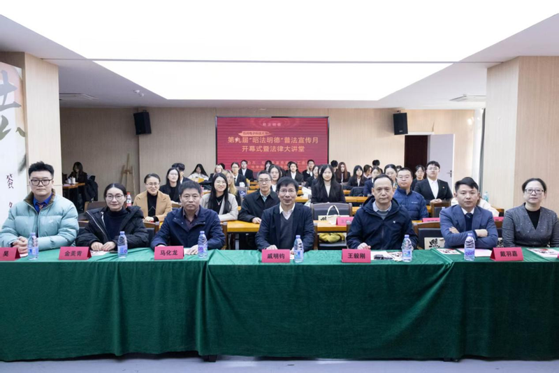 12月3日,第九届 “昭法明德” 普法宣传月开幕式在下沙校区党建智治中心举行。校党委副书记戚明钧,党委宣传部、工会、妇联、人文艺数与数字媒体学院、法学院、教职工法律咨询中心相关负责人和师生代表参与活动。