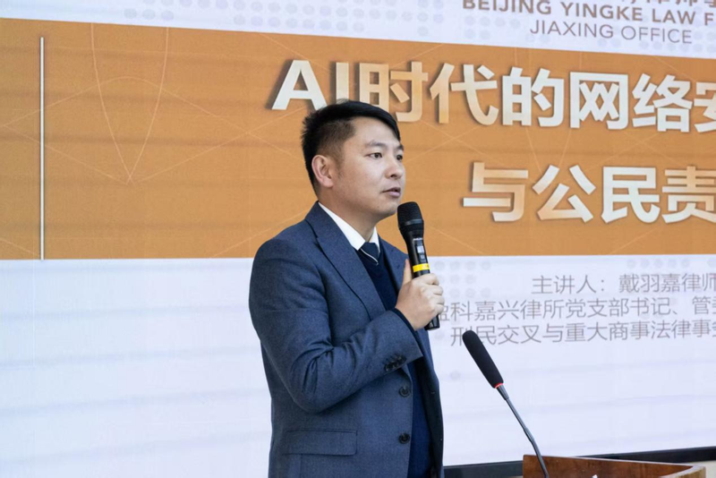 致力于对法治的贯彻落实,校教职工法律咨询服务中心和校法律援助中心为全校师生提供了免费的法律服务。现场对普法志愿服务先进典型进行表彰。开幕式后,盈科(嘉兴)律师事务所党支部书记戴羽嘉以“AI 时代的网络安全挑战与公民责任”为题作专题讲座,结合生活实例剖析当代网络安全问题,引导师生文明上网。